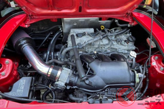 最大の見どころは心臓部の換装です。現オーナーは2024年に、TCSモータースポーツ製キットを用いて3.5リッターV型6気筒「2GR-FE」エンジンに載せ替え、同社製シングルマフラーを組み合わせたようです。