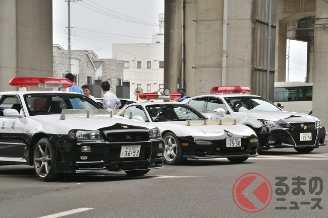 普段はなかなか間近で目にすることもできない複数のパトロールカー(パトカー)が並ぶなか、来場者の多くが注目していたのがマツダ「RX-7」のパトカーでした。