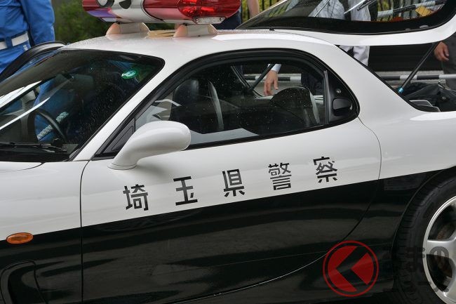 マツダ「RX-7“パトカー”」登場!? 美しすぎる「最強の警察車両」が超カッコいい! クルマ好きも思わずウットリな埼玉県警「幻の“FD3S”」公開