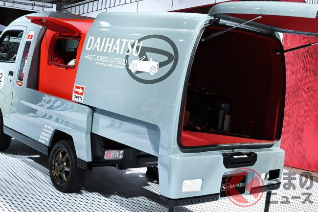 ダイハツ斬新「軽トラ」に再注目! まさかの「荷台が伸びる」ボディがスゴイ! 「めちゃ広ッ空間」で車中泊もいけそうな「ハイゼットトラックジャンボEXTEND 2」ってどんなクルマ?