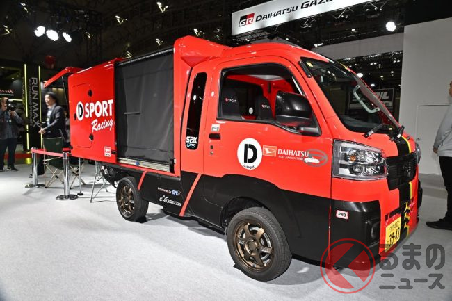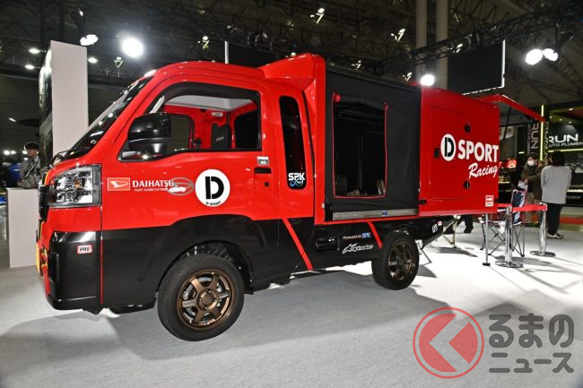 会場では、「D-SPORT Racing Team」の「コペンGRスポーツ」ラリーカーと並んで展示され、モータースポーツにおける「簡易モーターホーム」としての活用が提案されました。