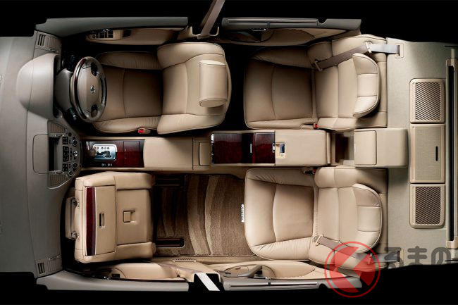 インテリアには、本木目パネルや上質なレザーシート、マッサージ機能や電動カーテンなど、当時の技術が詰め込まれており、「走る応接室」とも呼ばれていました。