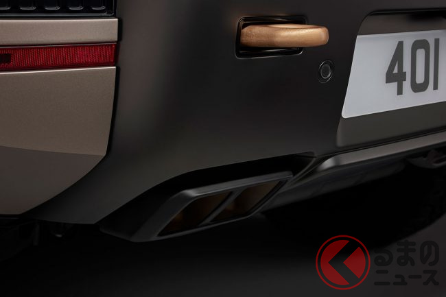 エクステリアでは、ディフェンダーらしい堅牢な雰囲気と英国ブランドらしい威厳を感じますが、片側35mm拡幅されたワイドなボディとアグレッシブな大開口ロアグリル、バンパーロアから連続するアンダーガードが、大人しいながらも通常のディフェンダーとは異なるパフォーマンスを予感させます。