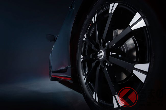 また、NISMOエンブレムの赤い「O」や車体下部の赤いストライプは、「サーキットから公道へ」というNISMOの哲学を表しています。