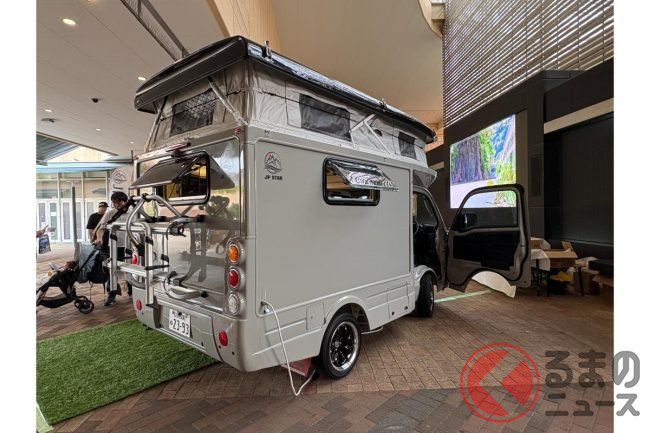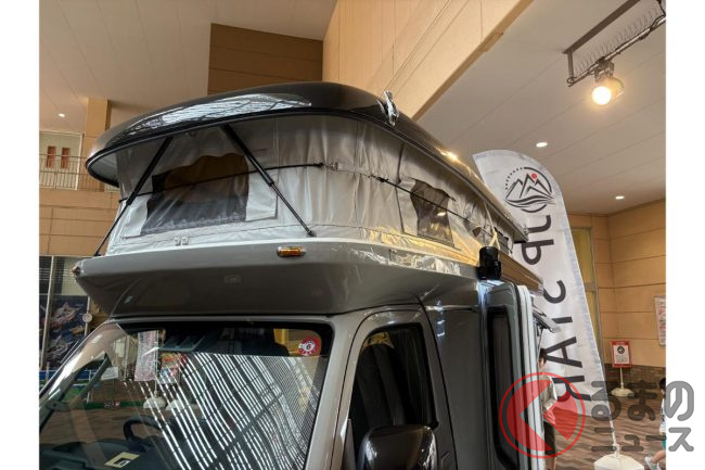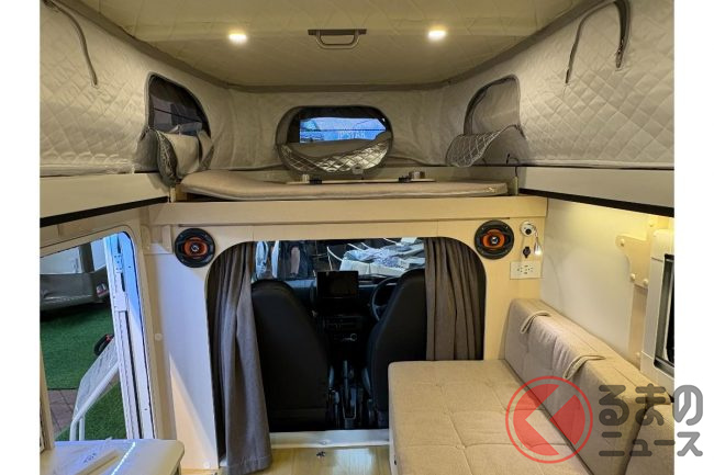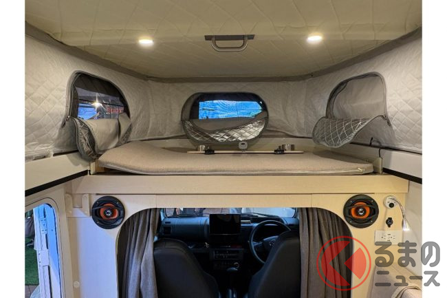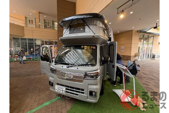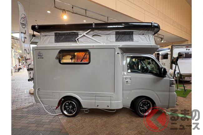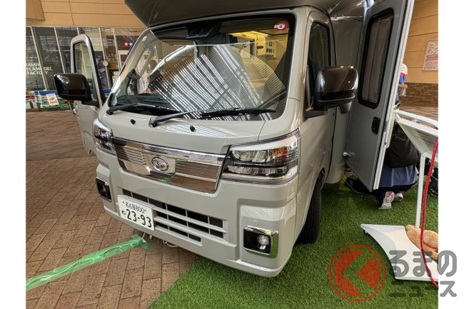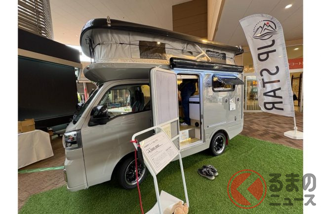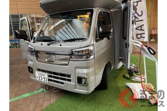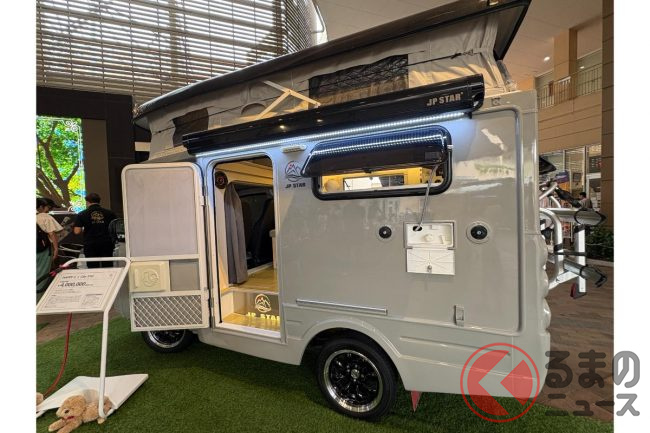 400万円! 最新型「“4人乗り”軽トラ」公開! ダイハツ「ハイゼットトラック」の「2階建て」仕様! 4人寝られる“超快適仕様”「JP STAR Happy1+ city TYO」登場