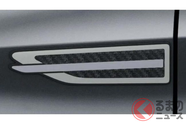 ディーラーオプションとしてダークブラックメッキ仕上げのフードアッパーガーニッシュ、左右フェンダーデカール、ブラックのドアミラーガーニッシュの3点がセットとなっています。
