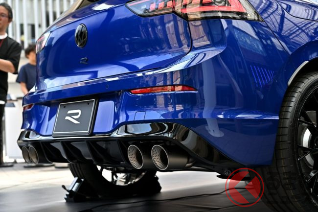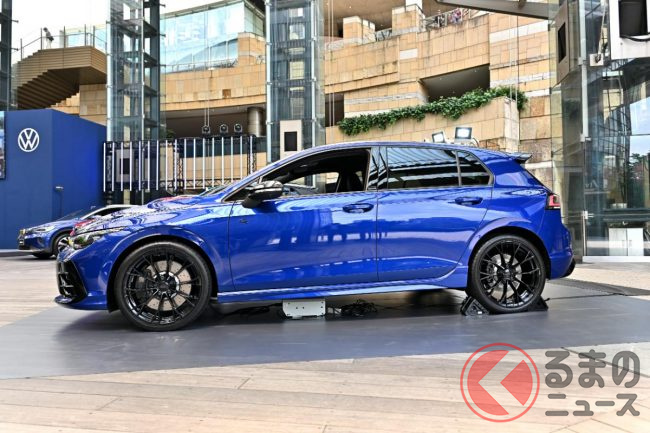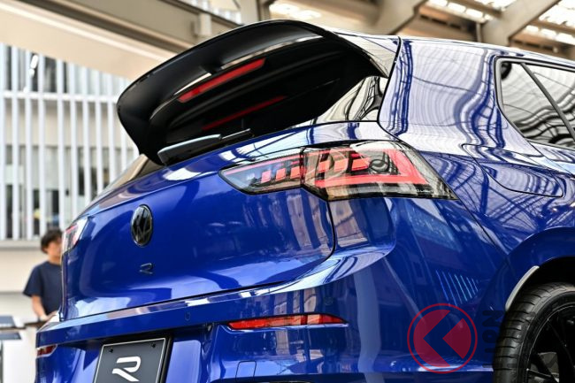 2リッターエンジンで「330馬力超え」! 全長4.3m“ちょうどいいボディ”の新「コンパクトカー」日本初公開! “専用装備”もり沢山な史上最速の「ブラック仕様」! VW新「ゴルフR」登場!