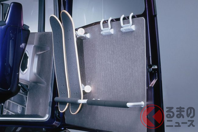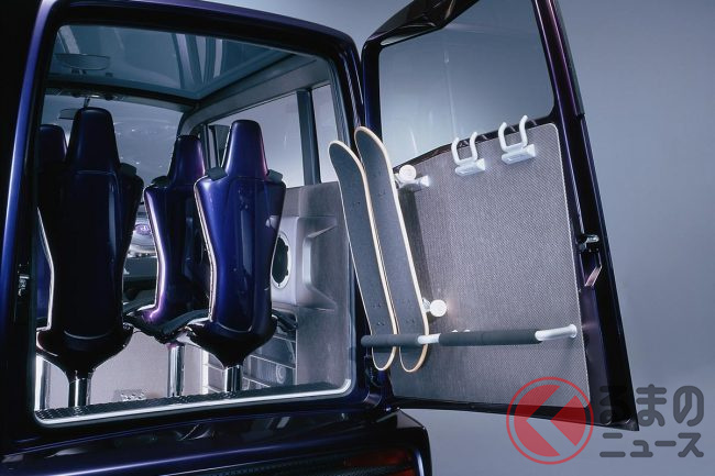 横開きのリアハッチにはスケートボードラックも有しており、気が向いたらすぐにでも街に飛び出していくことができるでしょう。