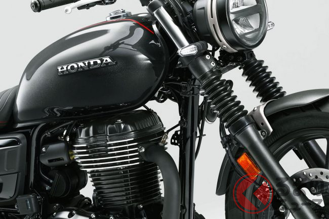 新車64万円! ホンダが「超レトロ」な新ロードスポーツ発表!「極太タイヤ&ストライプ」がカッコイイ! 高級な「メッキ装飾」も採用した中型バイク「新GB350」発売へ!