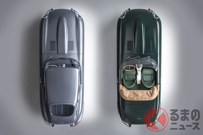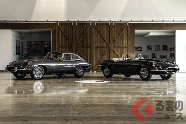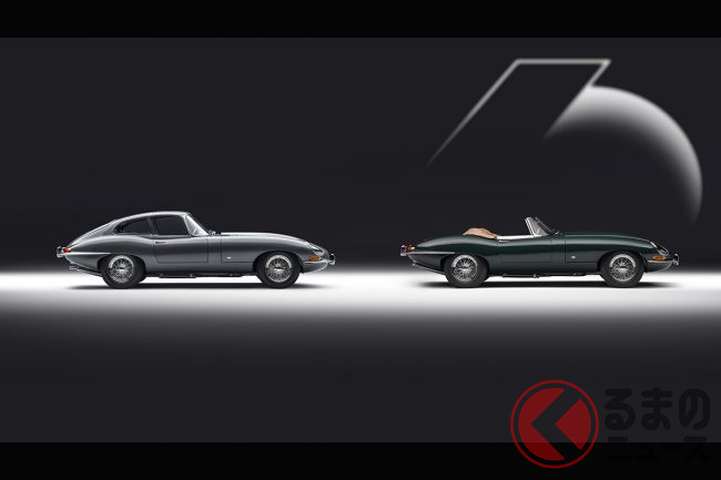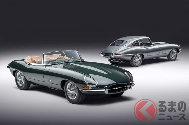 ジャガーEタイプは、1961年から1975年まで生産された伝説的なスポーツカーで、その美しいロングノーズと流麗なフォルムは、フェラーリ創業者のエンツォ・フェラーリが「世界で最も美しいクルマ」と称賛したほど。