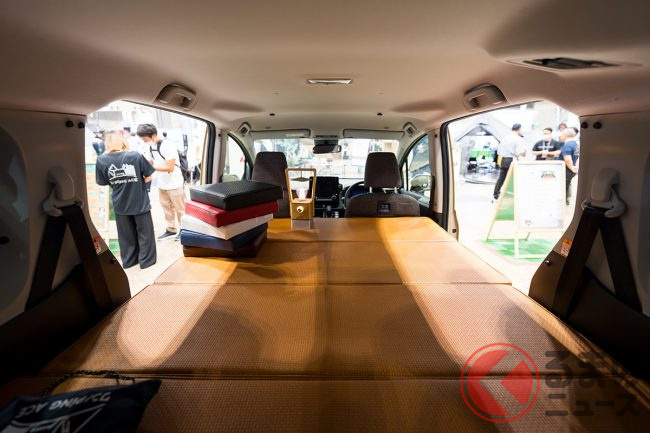 2025年6月27日から3日間開催の「東京アウトドアショー2025」に、トヨタの純正パーツを取り扱うトヨタモビリティパーツはトヨタ「シエンタ」向けの車中泊用ベッドキットを出展しました。どのような仕様なのでしょうか。