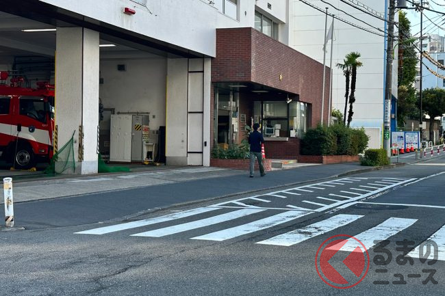 道路上にはさまざまな道路標示があります。特に消防署や警察署の出入口付近にある「斜線ゾーン」は重要な道路標示のひとつです。