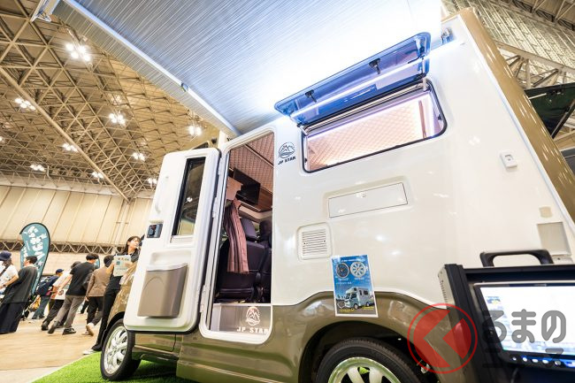 JP STARのブランド名で知られるキャンピングカーの製造・販売を行うMoon Star Exportが開催するこのイベントでは、同社で人気の軽自動車ベースのキャンピングカーを中心に、近日正式発表予定のプロトタイプ車を含む計4台が展示・公開されました。