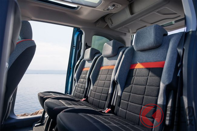 そんなベルランゴは5人乗りの2列目シート仕様(全長4405mm×全幅1850mm×全高1830mm)のほか、ホイールベースと全長を延長し、3列シートを備えた7人乗りミニバンの「ロング」(全長4770mm×全幅1850mm×全高1850mm)が設定されていることも特徴。