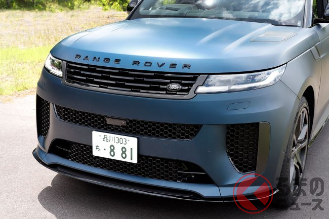 2400万円超え! 635馬力の「SUV“スポーツカー”」が凄い! 「2.5トン」の巨大ボディなのにSUVらしくない!? 専用ブルーが美しい「レンジローバースポーツ SV」を体感