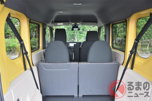 4人乗り仕様では、助手席・後席を床下に格納して運転席のみの1人乗りにすることも可能で、助手席側の最大スペース長は2645mmを確保して長尺物を楽に載せることもできます。