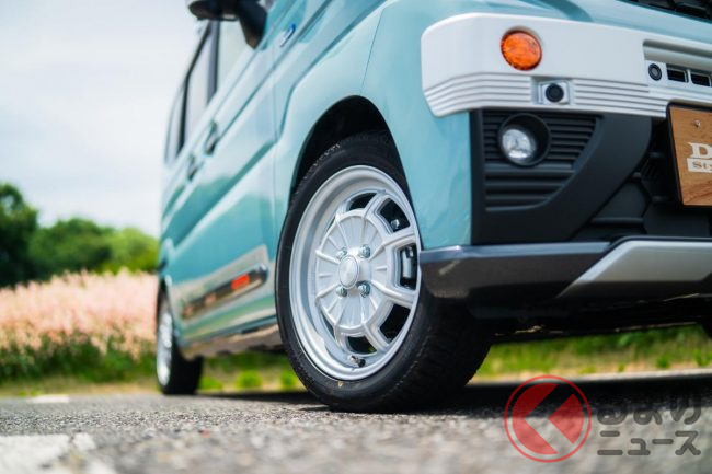 SPACIA GEAR NOCTフェイスチェンジキットと、ダムドの定番ホイール 「Cantabile」がセットになった「エクステリア+Cantabile」は、足元もニューレトロテイストに交換することで、車両としてまとまり、完成度を一気に高めることができます。