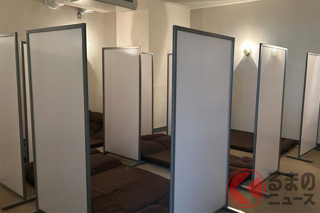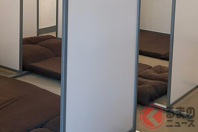 高速SAで「横になって寝られる」のサイコー! たった2000円&めちゃお手軽な「“斬新”就寝ベッド」が好評に! お風呂に入れて車中泊より快適な「寝ころびスペース」がスゴい!
