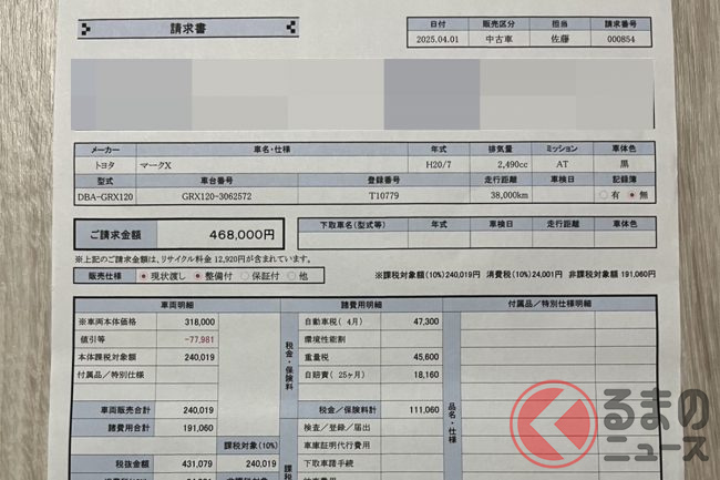 そんなカーネル事件ですが、実際に被害にあったAさんはカーネル東広島店で2025年4月にトヨタ「マークX」を購入。
