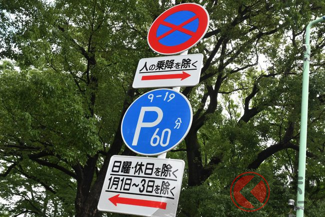 例えば駐車禁止の標識の下に「日曜・休日を除く」「8-20」の補助標識が付いていれば、日曜日と休日を除いた午前8時から午後8時までの間、その道路は駐車が禁止されるというわけです。