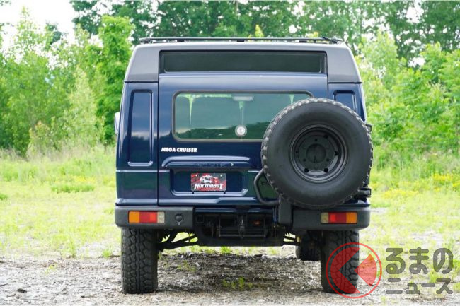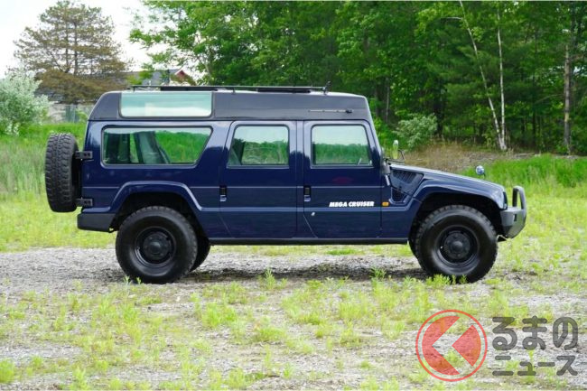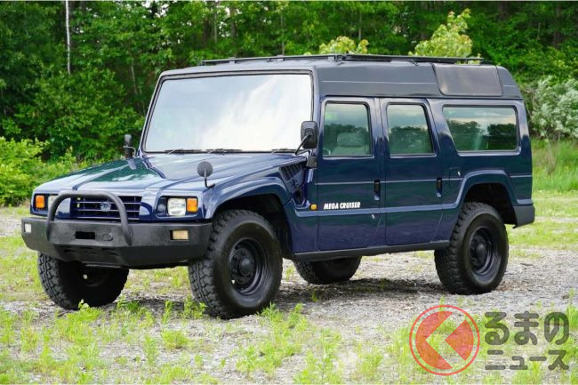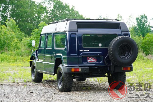 メガクルーザーは、1996年1月に日本国内で発表されました。日本の陸上自衛隊向けに開発された高機動車を民生向けに仕立てたモデルで、極めて高い不整地走破性能を持っていることが特徴です。