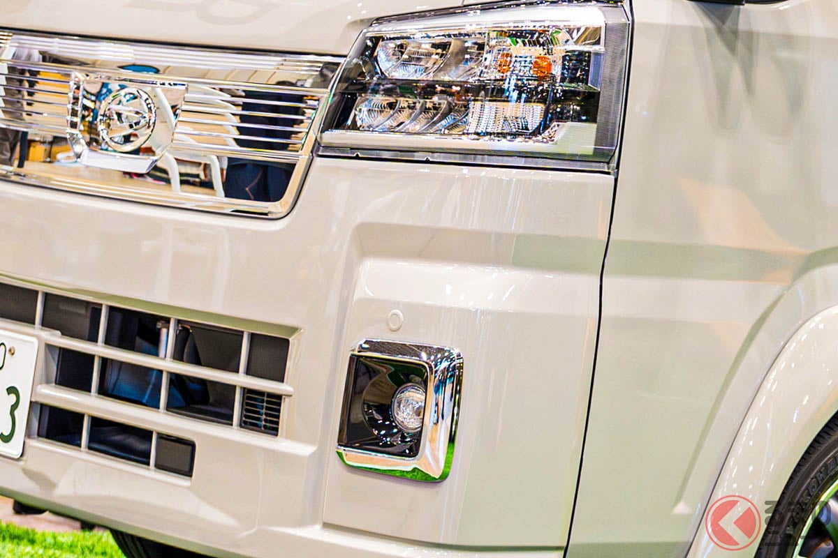 “4人乗れる”「軽トラ」公開! 400万円の超「広びろ内装」仕様! ダイハツ「ハイゼットトラック」の「2階建て」仕様「JP STAR Happy1+ city TYO」登場