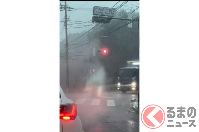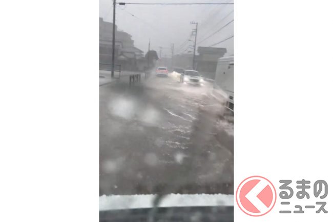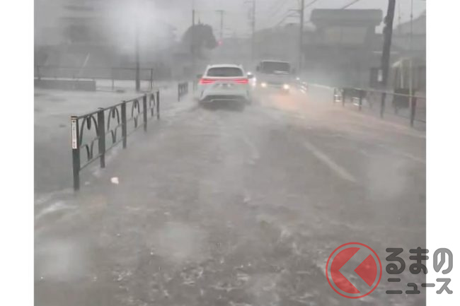 衝撃! 突然の「大雨」で道路が冠水、どうする? 事前事後の対処方法は? JAFテストに見る危険性とは