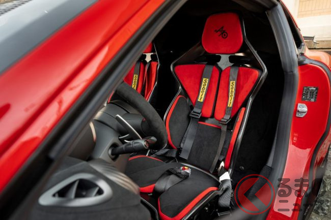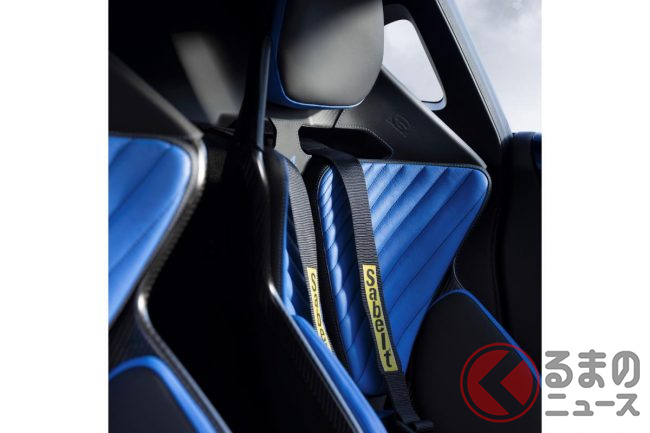 インテリアはボディカラーと共通カラーとなり(ブラン グラシエのみグレーインテリア)、専用2トーン デザインのSABELT製軽量フルカーボンモノコックバケットシートが装備されます。