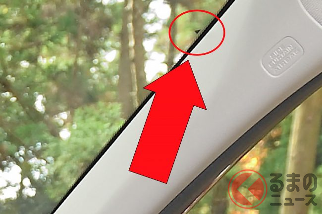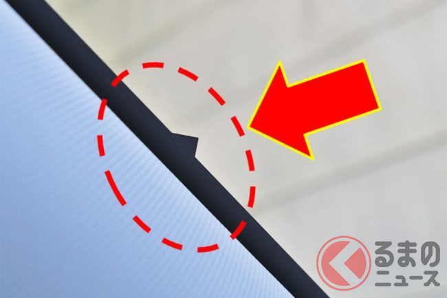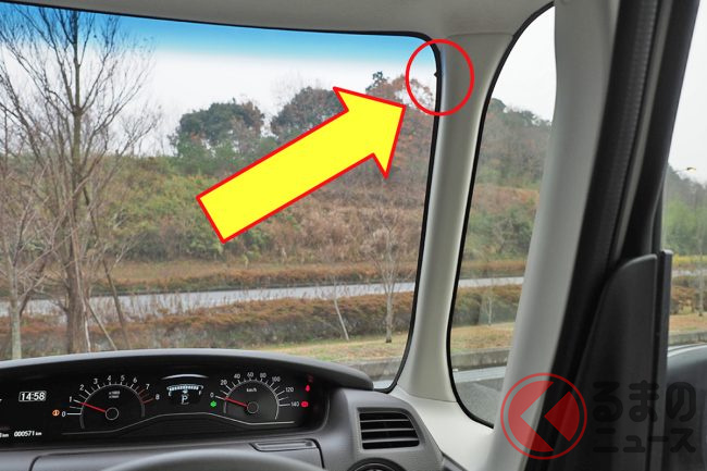 クルマのフロントガラスのふちに、小さな三角形(▲)が備わっている場合があります。実は重要な「しるし」だという謎の「▲マーク」について紹介します。