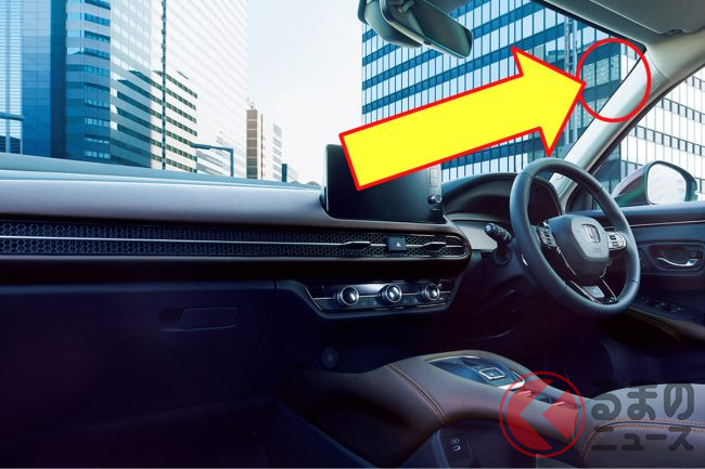 フロントガラスの「ナゾの“▲マーク”」何のため!? 意味が分かるとスゴい! ちょうど「目に入る」位置にある「ホンダ車の“謎のしるし”」の正体とは