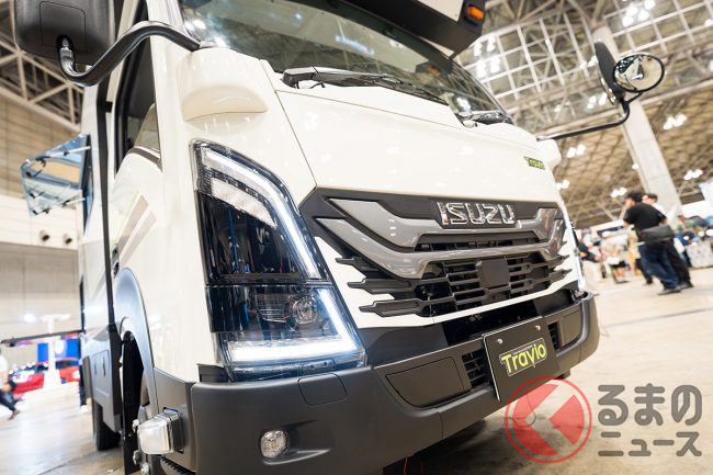 いすゞの最新「“7人乗り”トラック」実車公開! 全長4.9m級の「普通免許で運転できるサイズ」! 超快適“車中泊”モデル「トラヴィオ“エクスペディションストライカー”」がスゴかった!