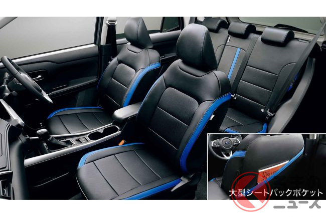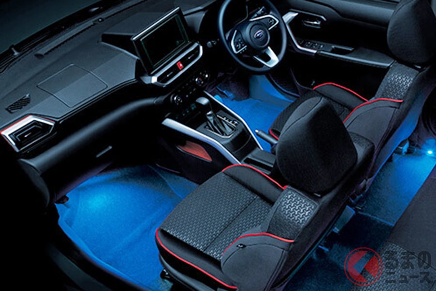 1リッターで28km走れる! スバル「“新”最小SUV」登場! めちゃ青く光るフロアイルミ&ブルーカーボン加飾がスゴい! 最新「レックス」の斬新インテリアとは!