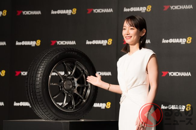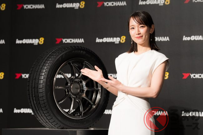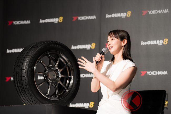 横浜ゴムは2025年7月17日、スタッドレスタイヤの新基準となる「iceGUARD 8(アイスガード エイト)」を発表しました。発表会のゲストには、「アイスガード7」に引き続きCMや広告モデルを担当する、俳優の吉岡里帆さんが出席。CM撮影の思い出や、プライベートについて語りました。