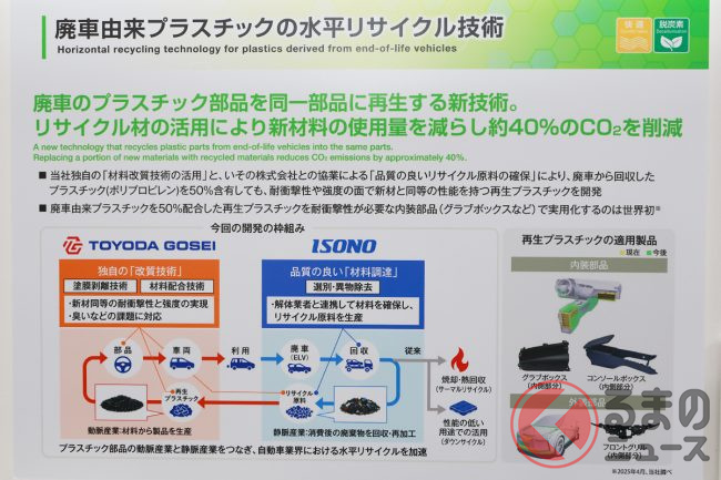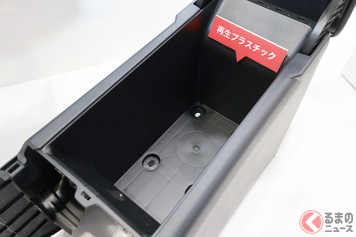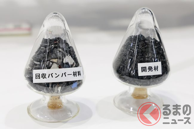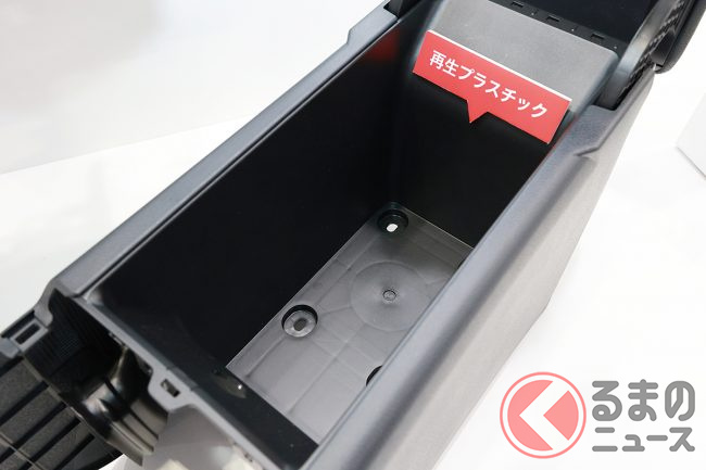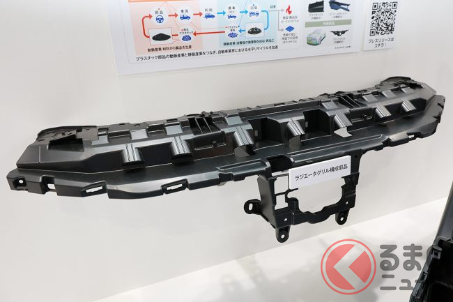 一方で、環境への配慮として、廃車から回収した樹脂を再利用した「廃車由来の再生プラスチック(内外装部品)」も出展されました。
