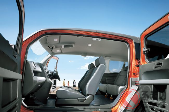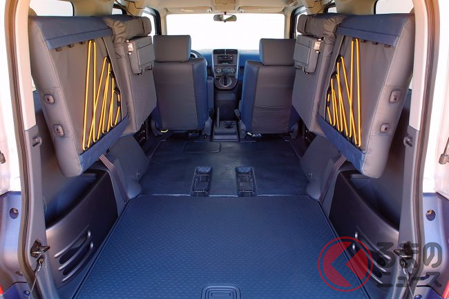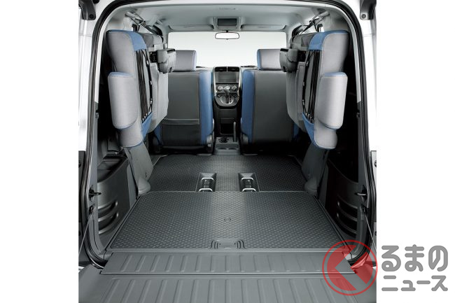リアシートにはミニバンの3列目シートのように左右に跳ね上げて広い空間とすることもできるようになっていたほか、汚れたままの道具も気にせず積める、水拭き可能なワイパブルフロアを採用。