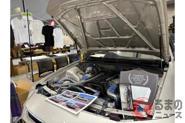 2025年7月11日より開催された「群馬パーツショー 2025」にて、2025年1月の「東京オートサロン」でのコンテストで優秀賞を受賞した群馬自動車大学校が手掛けたカスタムカーが実車展示されました。