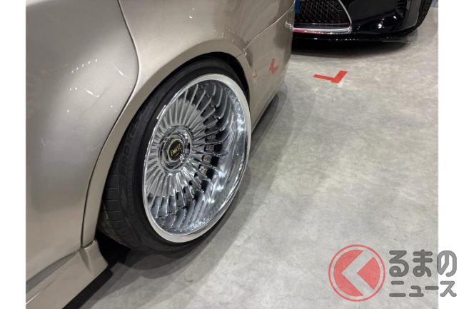 エンジンは純正ベース車の2リッター「1G」型エンジンから2.5リッターの「1JZ」型エンジンにへスワップしのうえターボ化し、シルバーに輝くホイールと車高を落としたシャコタン仕様。