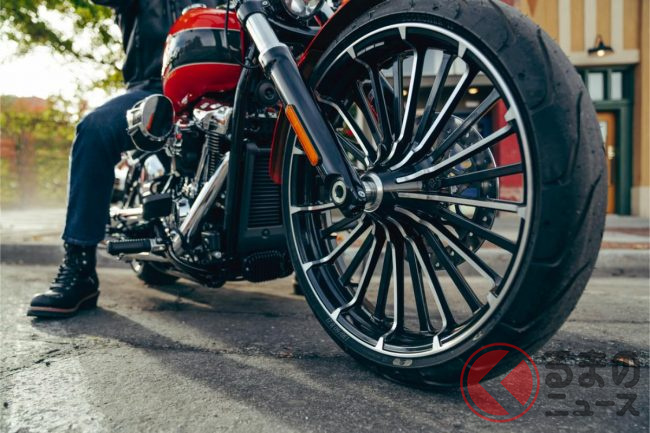 ブレイクアウトはクラシックなチョッパースタイルと力強いスタイリングが特徴的なモデル。エンジンには117カスタムVツインエンジンを搭載し、最大出力は103HPと最大トルク168Nmを発揮します。