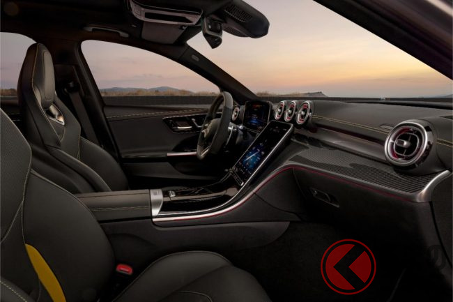 ボディサイズは全長4835mm×全幅1900mm×全高1455mm、ホイールベースは2875mmと、専用エアロやフェンダーの装着により全長・全幅ともに通常のCクラスと比べて80mm拡大されています。