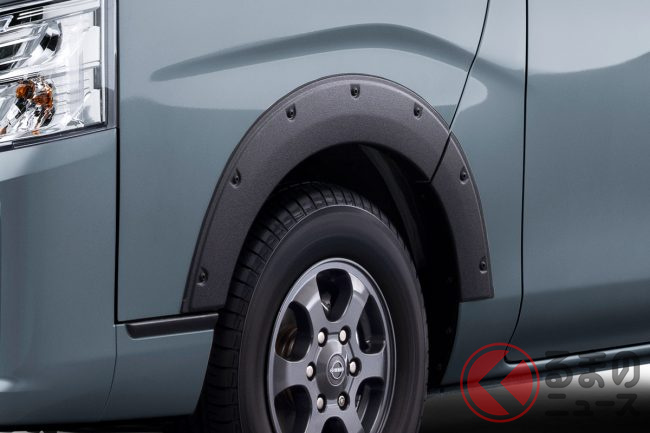 4WDやSUV車をメインに展開するカスタムパーツメーカーのジャオスは2025年7月22日、日産「キャラバン(E26)」用のアクセサリーパッケージである「SOTOASOBI パッケージ」に、JAOS製の「フェンダーガーニッシュ・タフブラック」が採用されたと発表しました。