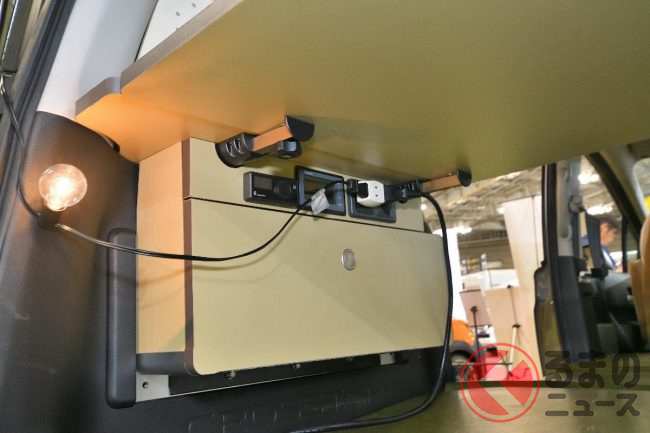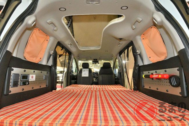 カスタマイズ可能なポイントはエクステリア部で11箇所、エクステリアに装着できるギアが8種類、インテリアではシートカバーやカーテン、ベッドキット、サイドキャビネット、テーブルなど8項目からチョイスすることができるようになっています。