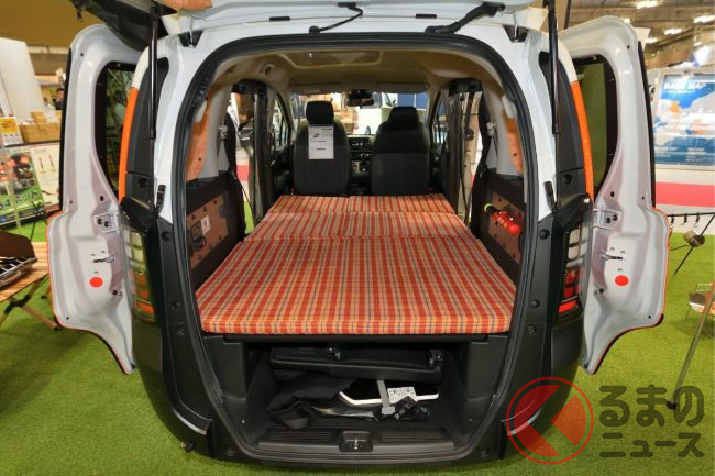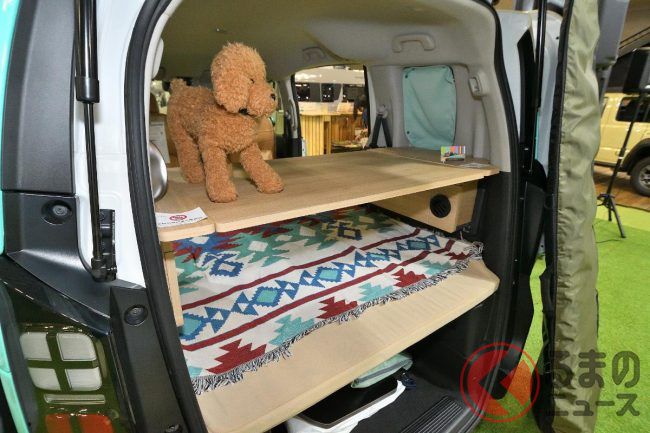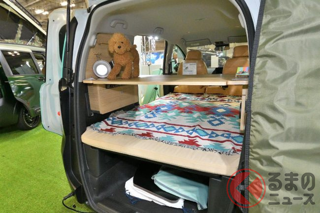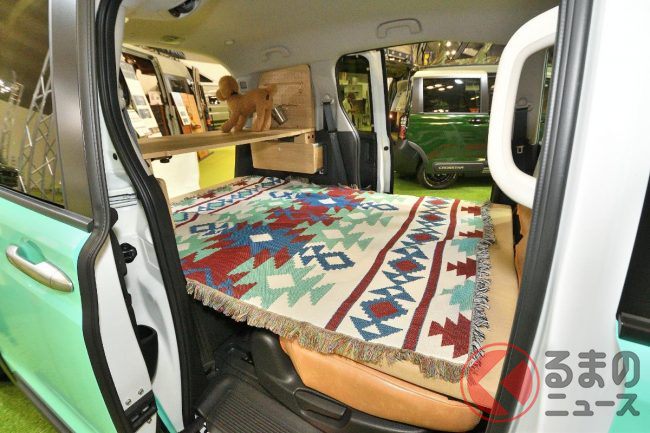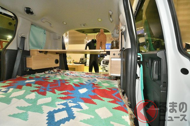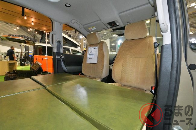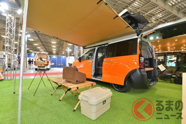 会場には「20代後半 独身女性」をイメージしたソロキャンパー仕様、「30代中盤 独身男性」をイメージしたこだわりの車中泊旅仕様、「30代後半夫婦と5歳の子ども」をイメージしたファミリーキャンプ仕様の3種類の車両が展示されており、同じベース車でも全く異なるキャラクターの車両に仕上げられることをアピールしていました。