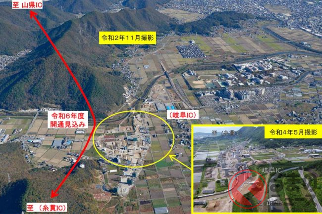 もともと当該区間は「2024年度」の開通予定でしたが、橋脚基礎工事中に悪い地盤(玉石)が出てきたため、工法を変更せざるを得ず、大野神戸IC~本巣ICだけ開通が夏にずれ込みました。