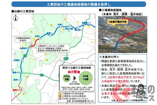 さらに新規開通区間の沿線市町では、自治体による企業誘致の取組が進んでいます。