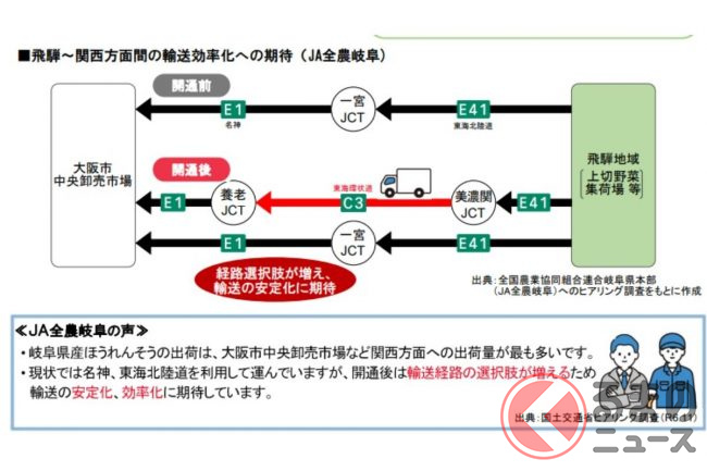 関西方面~北陸・飛騨方面間のダブルネットワークも形成され、名神・東海北陸と広域交通を分担できるようになります。