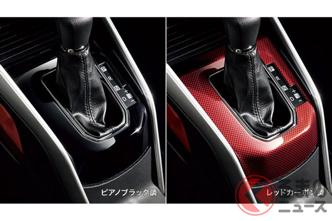 「レッドカーボン調パック」は、インテリアの随所に赤のアクセントが効いており、ブラック基調の車内に鮮やかなコントラストを生み出し、スポーティさを強調。