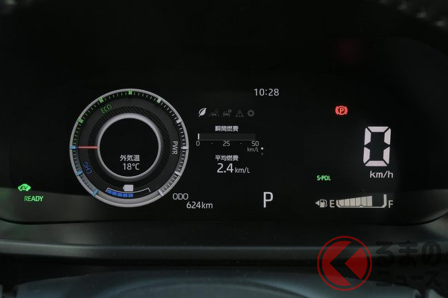 エクステリアには、ハイブリッド専用の16インチアルミホイールと、ガンメタリック塗装のフロントグリルが採用され、ガソリンモデルとの差別化が図られています。