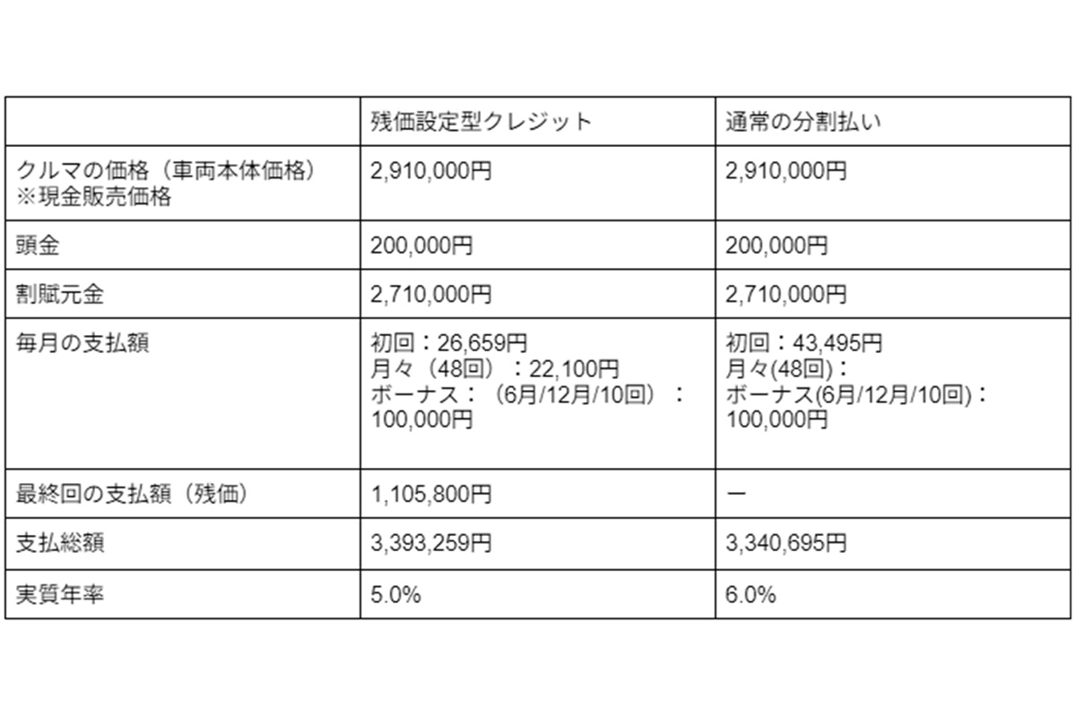 毎月の支払額は残価設定型クレジットの約2倍になりますが、支払総額は5万円以上抑えられます。