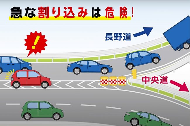 岡谷ジャンクション付近を通行する際の注意点について、県警高速隊の担当者は次の4点を挙げています。