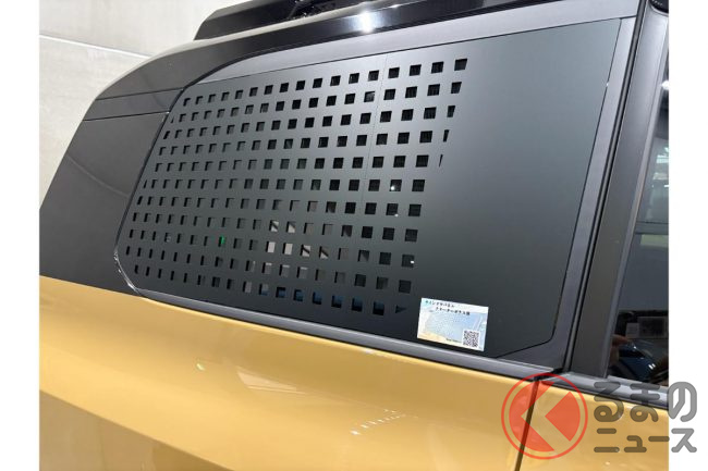 サイドには片側8mmワイドの「オーバーフェンダー」を装着し、艶のある質感の高さを強調。また展示車には「クォーターガラス用のウインドウパネル」も装備していました。